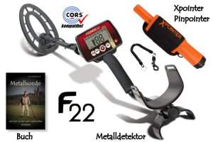 Metalldetektor Fisher F22 & CORS Strike Hochleistungsspule (Tiefenortungspaket)