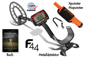 Fisher F44 Premiumpaket (Metalldetektor & Quest Xpointer orange & Schatzsucherhandbuch)